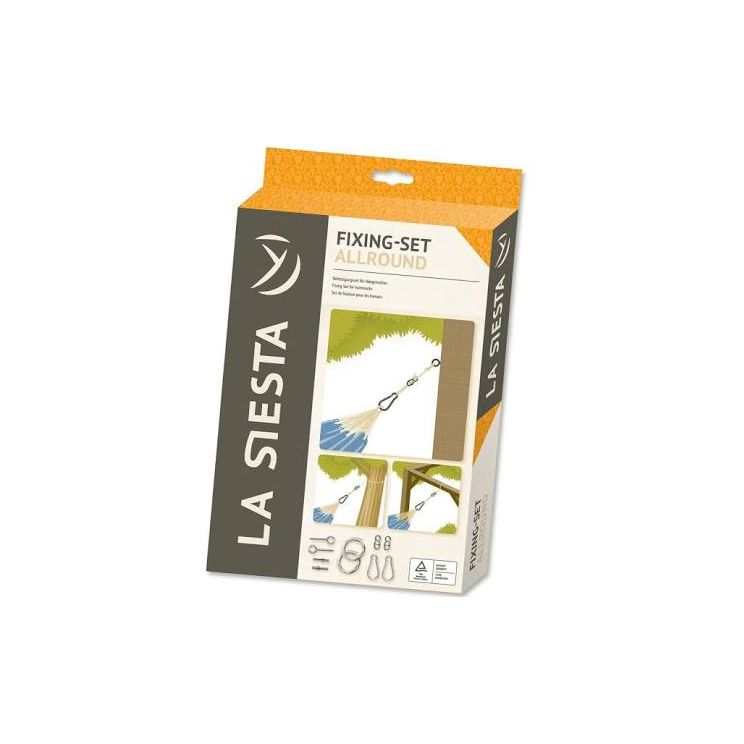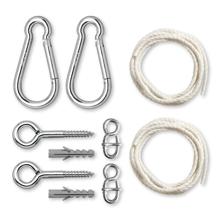 Tip! Bestel nu direct én extra voordelig een hangmat bevestigingsset mee. Deze hangmat bevestigingsset bevat twee stukken touw van 3 meter, twee karabijnhaken, twee ringhaken met plug en twee achten waarmee het touw gemakkelijk op maat te schuiven is. De hangmat bevestigingsset Allround is geschikt om de hangmat vast te maken aan bijvoorbeeld een schutting of een muur. Deze set kan ook gebruikt worden om de hangmat ergens omheen te binden, zoals om een balk of een boom.