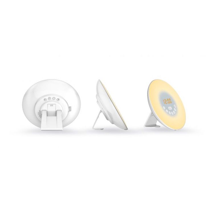 Sunrise & Sunset simulation Deze lichtwerker zal het werk doen om u natuurlijk te wekken. Middels een verhelderend licht van 1% -100% zal uw kamer geleidelijk verlicht worden. Zo wordt u uitgenodigd voor een frisse en energieke dag na een diepe slaap. Ook zal de wekker 's nachts het tegenovergestelde doen bij zonsondergang om u te helpen in een natuurlijke slaap te vallen