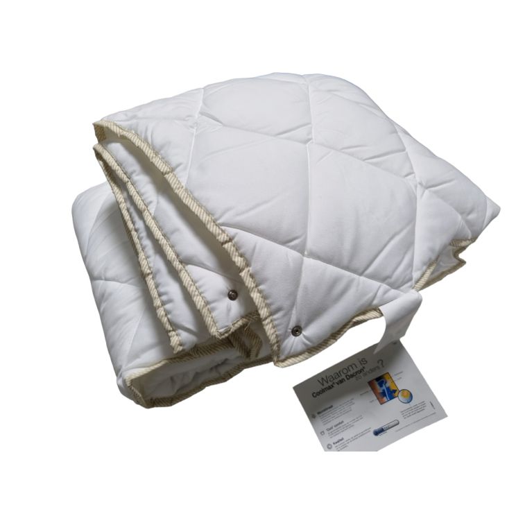 De Climarelle matrastopper heeft een Coolmax tijk. Coolmax zorgt voor een optimale vochtregulatie. Het helpt de lichaamstemperatuur constant te houden, is hygiënisch en werkt permanent. De Climarelle matrastopper is wasbaar op 60 °C en voorzien van 4 elastieken op de hoeken, zodat deze mooi op zijn plaats blijft liggen.