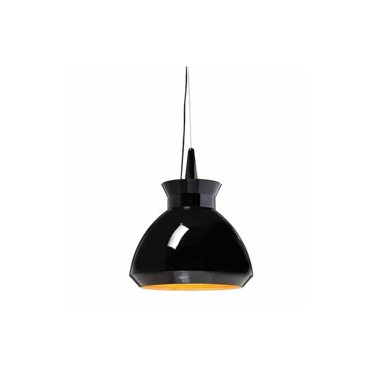 De combinatie van het glanzende oppervlak en de druppelvormige gebogen vorm met punt geeft deze design lamp Sting van Kare Design een zeer elegante uitstraling.