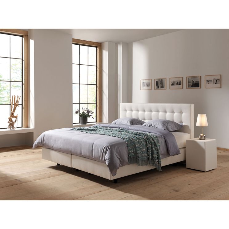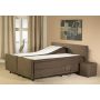 Een boxspring bestaat uit een boxspring én matras. Deze boxspring is gebouwd op een stevige beuken houten frame, zodat deze box ook uitermate geschikt is voor gebruik in bijvoorbeeld in een hotel of een bed and breakfast. Een boxspring is feitelijk een bak vol met veren, en dat is ook precies wat het is. De geharde metalen veren bieden stuk voor stuk precies die ondersteuning die past bij het lichaamsdeel dat erop rust. De boxspring volgt de lijnen van uw heupen en schouders. Dat garandeert dus een volkomen natuurlijke lichaamshouding. De boxspring is afgewerkt met duurzame meubelstoffering, welke slijt en kleurvast is en leverbaar in diverse kleuren.