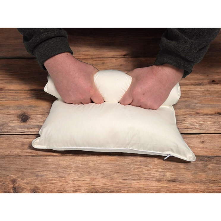 Geweldig kussen, lekker stevig en toch zacht. Het kussen lijkt dik, maar je moet er eerst een paar nachten op slapen, dan zakt het wat in. Ik heb er daarna zelfs nog wat navulling bijgedaan.