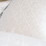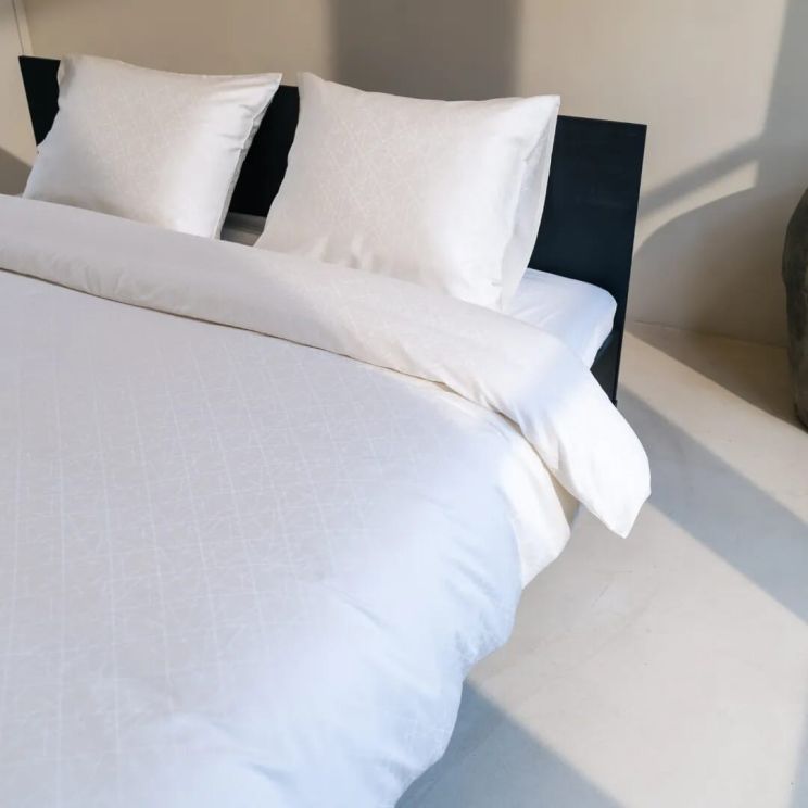 Kobe is een jaqcuard geweven zijde dekbedovertrek. De stof bestaat uit 20% zijde en 80% pima-katoen: een bijzonder soepele, zachte stof die goed is voor huid en haar. Door de vezelcombinatie zijde/pima katoen heb je het beste van twee werelden: een soepel dekbedovertrek dat niet te kwetsbaar is. Het speelse ingeweven dessin geeft het dekbedovertrek een luxe uitstraling, zodra het licht op het dekbedovertrek valt zie je de lijnen prachtig glanzen. Kobe is verkrijgbaar in wit en offwhite en zit verpakt in een luxueuze doos.