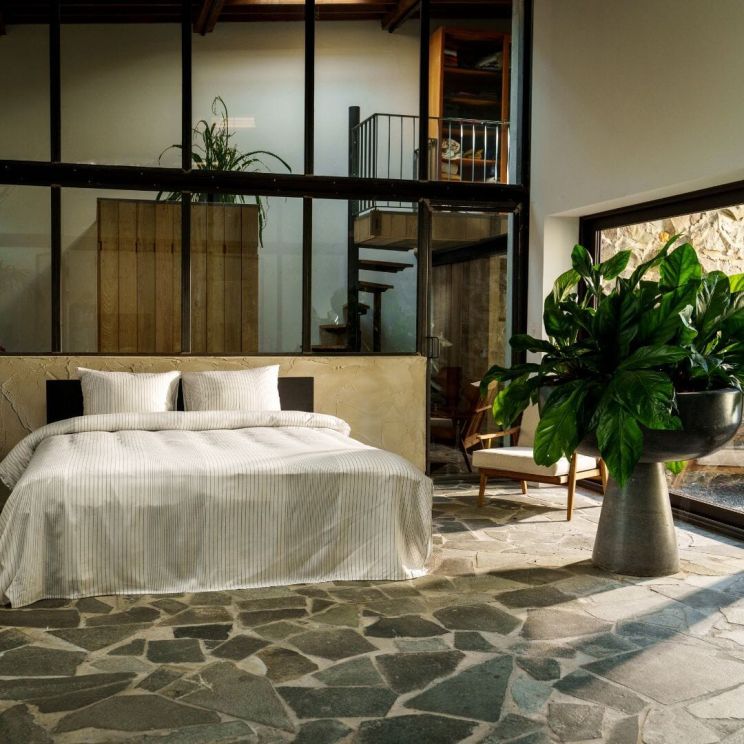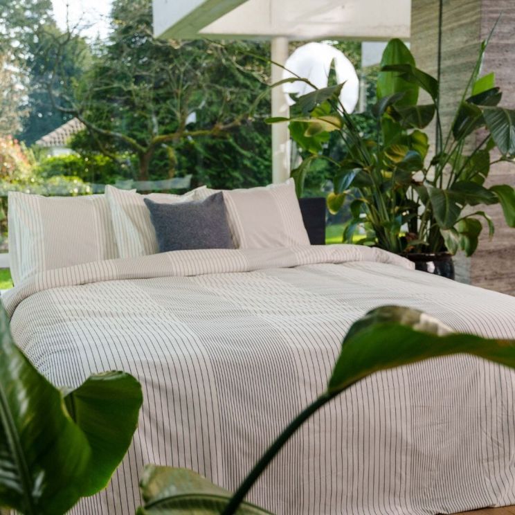 Ga voor een rustige, strakke look met dekbedovertrek Sao. Dit frisse witte overtrek heeft een patroon met een verticaal lijnenspel in antracite. Zo heb je het speelse van een printje, maar toch een rustige uitstraling door de strakke lijnen. Sao is yarn dyed. Dit betekent dat de garens in specifieke kleuren worden geverfd voordat ze in een ontwerp worden geweven. Het ontwerp maakt dus letterlijk deel uit van de stof. Het dekbedovertrek is gemaakt van 100% Tencel.