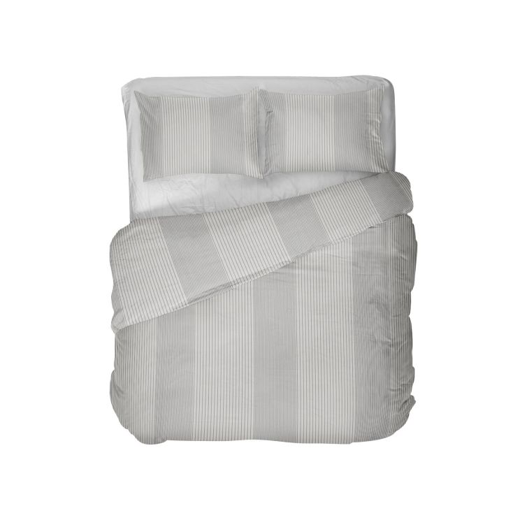 Ga voor een rustige, strakke look met dekbedovertrek Sao. Dit frisse witte overtrek heeft een patroon met een verticaal lijnenspel in antracite. Zo heb je het speelse van een printje, maar toch een rustige uitstraling door de strakke lijnen.Sao is yarn dyed. Dit betekent dat de garens in specifieke kleuren worden geverfd voordat ze in een ontwerp worden geweven. Het ontwerp maakt dus letterlijk deel uit van de stof.Het dekbedovertrek is gemaakt van 100% Tencel.