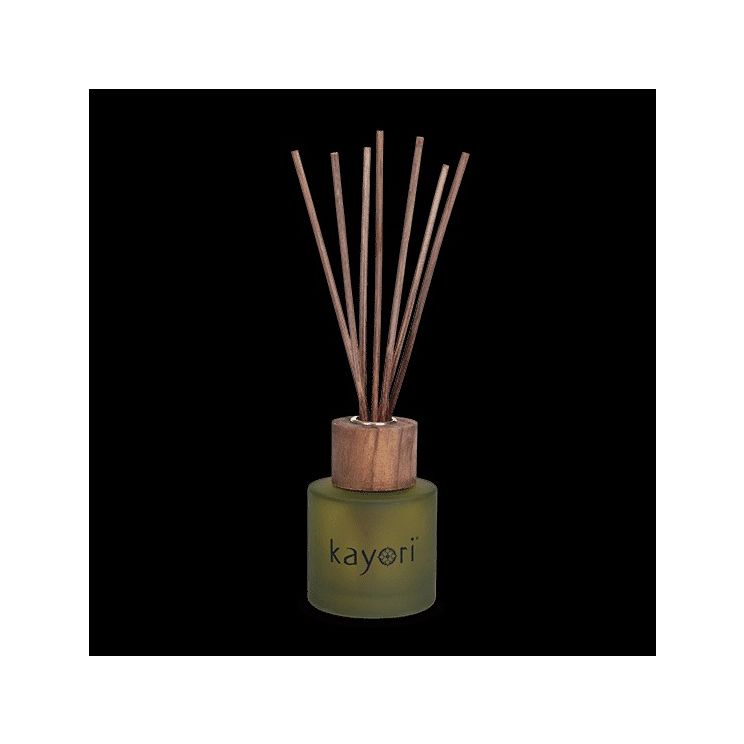 Deze Kayori geur diffuser verspreid een volle maar zachte geur. De diffuser is een luxueuze glazen flacon met bamboe dop: een geur diffuser die gezien mag worden!