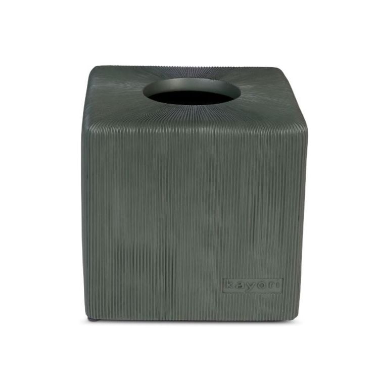 De Dogo badkamer accessoires is een complete badkamer lijn met luxe uitstraling. Alle producten in deze lijn zijn gemaakt van suikerriet: een duurzaam alternatief voor plastic. De Dogo serie kenmerkt zich door een sterk eenvoudig ontwerp met geribbeld reliëf. De producten zijn verkrijgbaar in groen, zwart en blauw. Tissuebox De tissuedoos zet je zo over een kartonnen tissuedoos heen, aan de bovenkant is een uitsparing om de tissues uit de doos te halen. De tissuebox is geschikt voor vierkante tissuedozen.