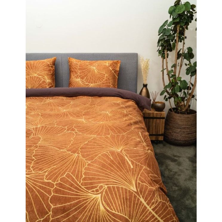 Dekbedovertrek Fuji is gemaakt van 100% biologisch katoen-satijn met de fijnste garens voor een extra soepel en zacht gevoel. Het overtrek is gemaakt van maarliefst 300threadcount, waardoor het extreem zacht en soepel aanvoelt voor de huid. Het is daardoor ook extra sterk en duurzaam in gebruik. Het overtrek is geproduceerd volgens de strenge normen van het GOTS-keurmerk. Hierdoor ben je er zeker van dat het dekbedovertrek geen schakelijke stoffen en nare chemicaliën bevat. De print op de voorkant van dekbedovertrek Fuji bestaat uit een mooie leer-bruine kleur met gingko bladeren in goud. De gingko bladeren bevatten echte gouden-sparkles met een metallic-effect. Het geheel geeft een prachtig, warm gevoel. Een absolute eyecatcher in de slaapkamer. De achterkant van het overtrek heeft een mooie, donkerbruine kleur. Het product zit in een opbergtas van de eigen stof. Zo krijg jij direct een voorproefje van het overtrek. Al onze producten die wij aan jou bieden, dragen een Kayori-label. Hierdoor draag jij automatisch bij aan een beter milieu en veilige en humane omstandigheden.