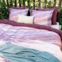 Dekbedovertrek Fukui heeft een uniek gestreept dessin. De strepen zijn organisch en nergens kaars recht; het bed opmaken kan niet fout gaan! Het dessin bestaat uit zachte roze tinten met een hint pastelblauw. De achterzijde van het overtrek is effen donkerroze. Dekbedovertrek Fukui is gemaakt van 100% Tencel, een oersterke en extreem zachte stof. De unieke eigenschappen van deze stof zijn het ventilerend vermogen (warm in de winter/ koel in de zomer) en het feit dat bacteriën geen kans krijgen bij Tencel: zo blijft de stof langdurig fris ruiken.
