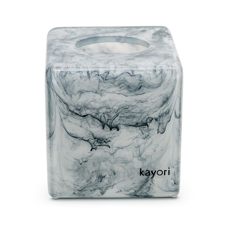 De Ikawa badkamer accessoires lijn is geïnspireerd op natuursteen en heeft hierom een prachtige marmer print. De Ikawa lijn is een complete lijn met alle opties die je in de badkamer nodig kunt hebben. De accessoires zijn gemaakt van suikerriet: een duurzaam alternatief voor plastics. De lijn is verkrijgbaar in de kleuren bruin en grijs. Tissuebox De tissuedoos zet je zo over een kartonnen tissuedoos heen, aan de bovenkant is een uitsparing om de tissues uit de doos te halen. De tissuebox is geschikt voor vierkante tissuedozen.
