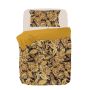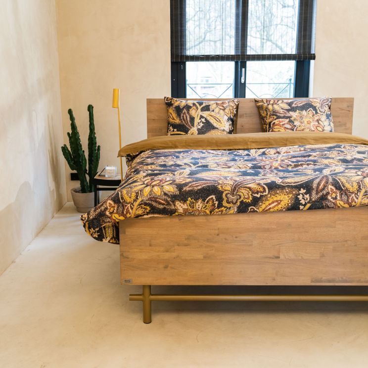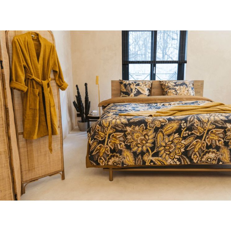 Het dessin ‘Isao’ is een herkenbaar dessin in een nieuw jasje. Bekende elementen uit mandala’s en paisley’s zijn uitgewerkt in prachtige goud-tinten op een diep donker bruine achtergrond. De achterzijde van het overtrek is uni effen goud. De stof van dit dekbedovertrek is de krachtige maar soepele pima-katoen. Een katoen soort die bijzonder sterk, slijtvast en zacht aanvoelt. Hierdoor blijft het overtrek heel lang mooi en voelt het heerlijk aan. Het dekbedovertrek is verpakt in een zak van de eigen stof: zo krijg je meteen een voorproefje van het dekbedovertrek!