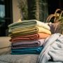 De Kayori Sagano plaid is gemaakt van 40% bamboo-vezel en 60% kunstvezel. Het is een prachtige, zachte kwaliteit waarbij enkel gebruik gemaakt is van de beste en fijnste garens. De Sagano plaid geeft een stijlvolle touch aan jouw interieur. De extreem zachte plaid is ideaal voor op de bank. Je kruipt er dankzij het ruime formaat met gemak helemaal onder, genietend van de behaaglijke warmte en zachtheid. Ook op bed of gedurende een zwoele avond in de tuin komt deze mooie plaid goed van pas. De Sagano plaid heeft een afmeting van 150 x 220 centimeter.