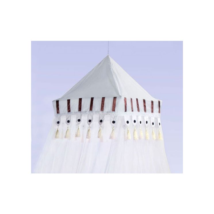 De klamboe Crusader is extra decoratief middels bandjes, kwastjes en knopen. U waant zich met deze klamboe terug in de middeleeuwen. De klamboe Crusader past ruim om een 1-persoons bed.
