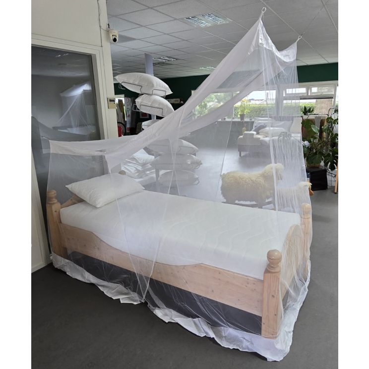 Klamboe Schuin Dak - Deze rechthoekige klamboe is speciaal ontwikkeld voor onder een schuin lopend dak en beschermt u tegen vervelende steek muggen en insecten. Met onze Schuin Dak klamboe kunt u ongestoord genieten van een goede nachtrust. De klamboe Schuin Dak 1-persoons is geschikt voor een 1-persoons bedden tot maximaal 1 meter breed.
