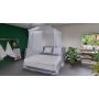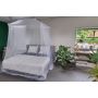 Klamboe valt mooi wijd over het bed, zodat je 's nachts niet verstrikt raakt.