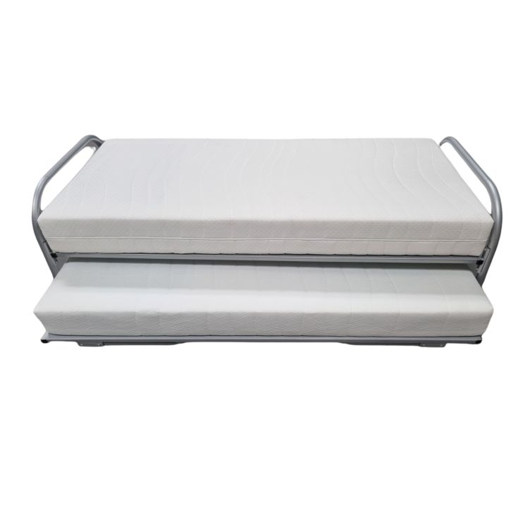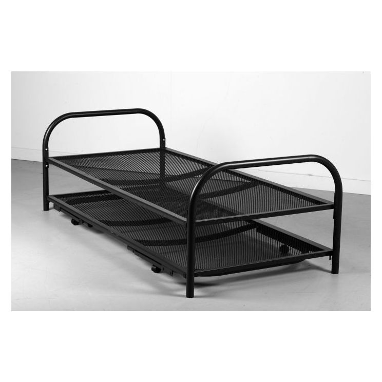 Als u een onderschuifbed besteld krijgt u geleverd een boven én onderbed inclusief bodem. Het onderste bed is voorzien van zwenkwielen, zodat u deze gemakkelijk kunt verrijden. De maximale matrashoogte voor het onderbed (om deze nog onder het onderschuifbed te kunnen schuiven) is ca 17 cm. Het onderschuifbed is verkrijgbaar in de kleur zilver.
