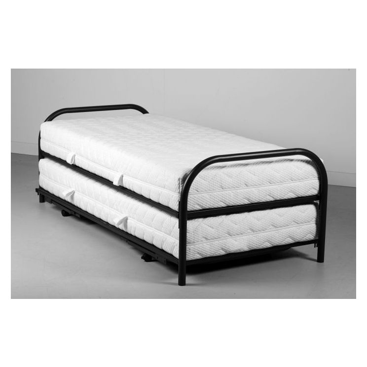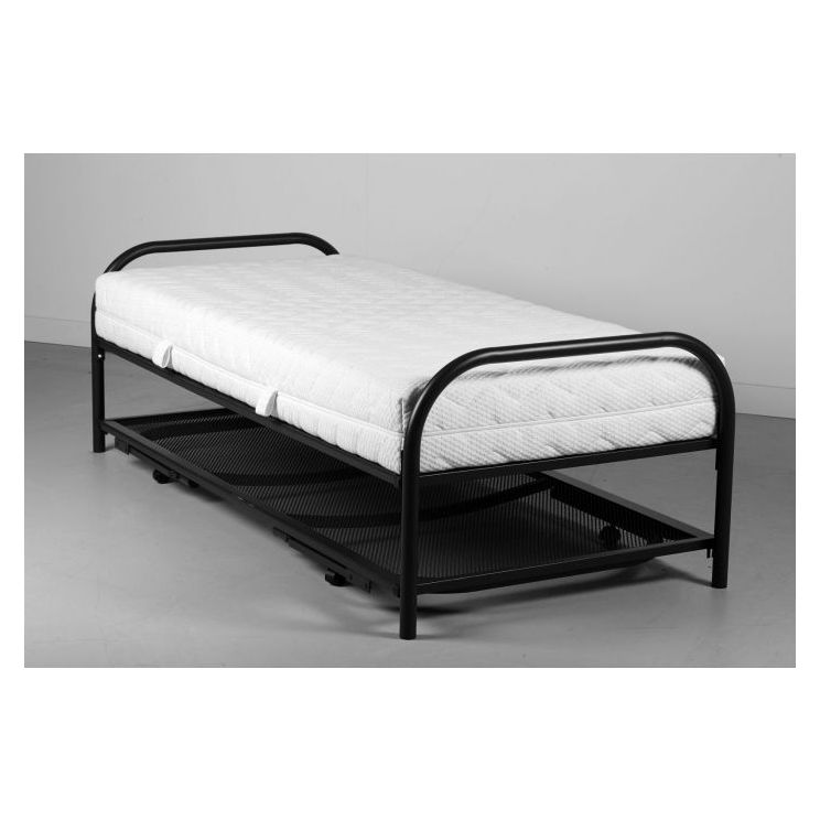 Luxe onderschuifbed met dwarsgespannen spiraalbodems (extra stevig) van uitstekende kwaliteit voor zeer scherpe prijs! Het onderschuifbed bestaat uit 2 delen, een bovenbed en een onderbed. Het onderste bed is voorzien van zwenkwielen, zodat u deze gemakkelijk kunt verrijden.