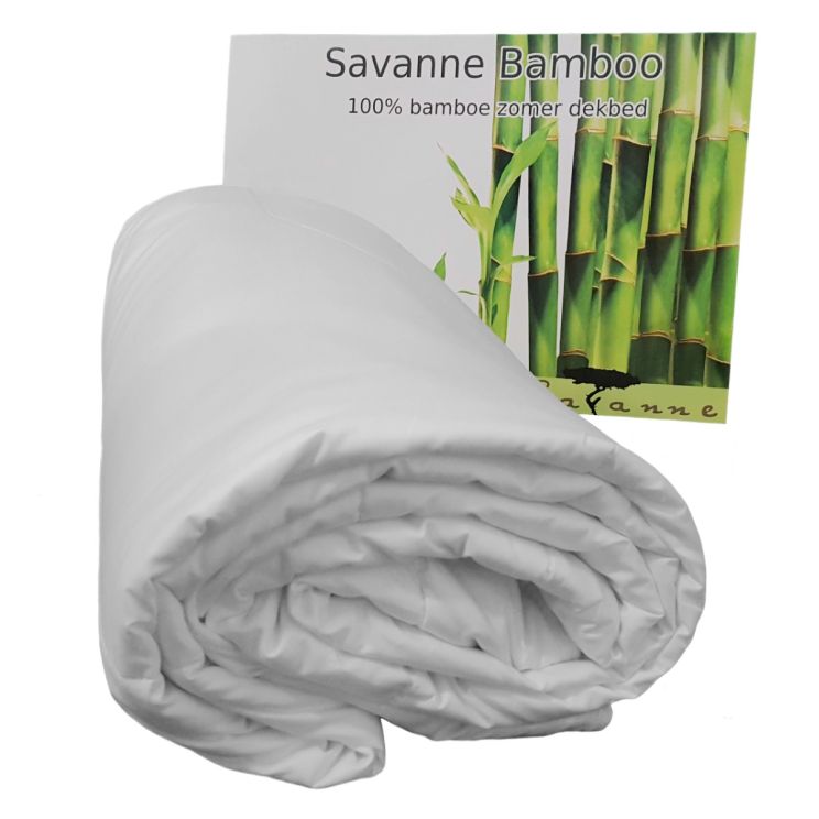 Zoekt u een dekbed gemaakt van 100% natuurlijk materiaal, duurzaam geproduceerd en waar u ook tijdens de warmste maanden van het jaar heerlijk onder kunt slapen, dan is dit bamboe zomerdekbed van Savanne een echte aanrader. Bamboe is een 100% natuurproduct wat ontzettend snel groeit én wat op een duurzame wijze wordt geteeld. Bamboe is bewezen bacterie- en schimmelwerend en wasbaar tot op 40 °C, meer dan voldoende om volledig anti-allergisch te zijn. Daarnaast heeft bamboe ook een uitmuntende vochtregulerende werking, waardoor het bij uitstek geschikt is als vulling voor een dekbed. De ventilerende en isolerende werking van een bamboe dekbed is beter dan die van een katoenen dekbed. Daarnaast is een bamboe zomerdekbed ook nog wat lichter dan een katoenen dekbed.