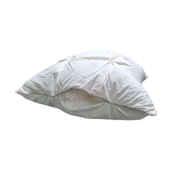 Dankzij de rits, kunt u de wol uit het kussen halen en de tijk/sloop van het kussen separaat wassen. De wol vulling zelf is uiteraard niet wasbaar. Deze moet speciaal behandeld worden. Ga daarvoor naar een stomerij.