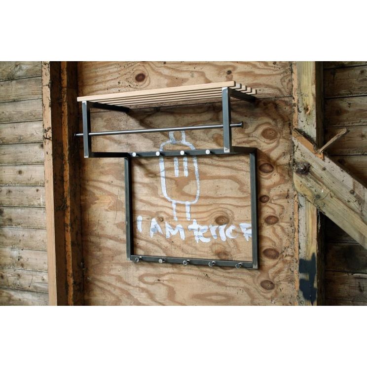 Deze stoere design wandkapstok Rizolli van Spinder Design is echt een alles-in-één kapstok. De kapstok beschikt over 12 haken, een stang voor kledinghangers én een hoedenplank die zoals de naam als zegt ruimte biedt voor hoeden, maar bijvoorbeeld ook sjalen of handschoenen.