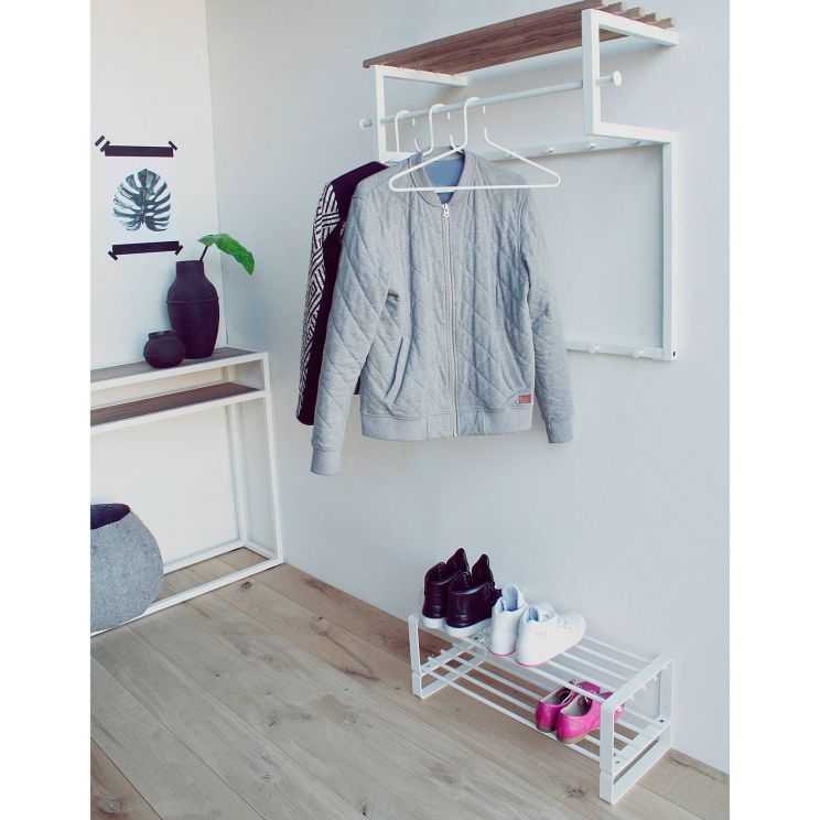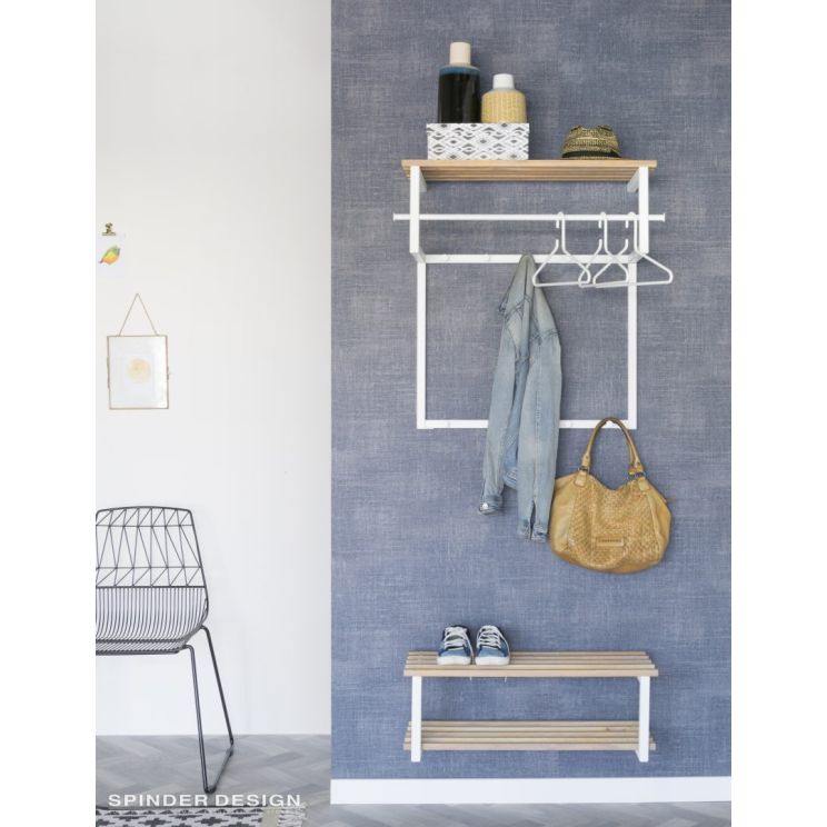 Specificaties Spinder Design wandkapstok Rizolli - Materiaal: staal, eiken - Afmetingen: H 76 x B 75 x D 34 cm - Verkrijgbaar in 3 uitvoeringen/kleuren: zwart, wit, blacksmith