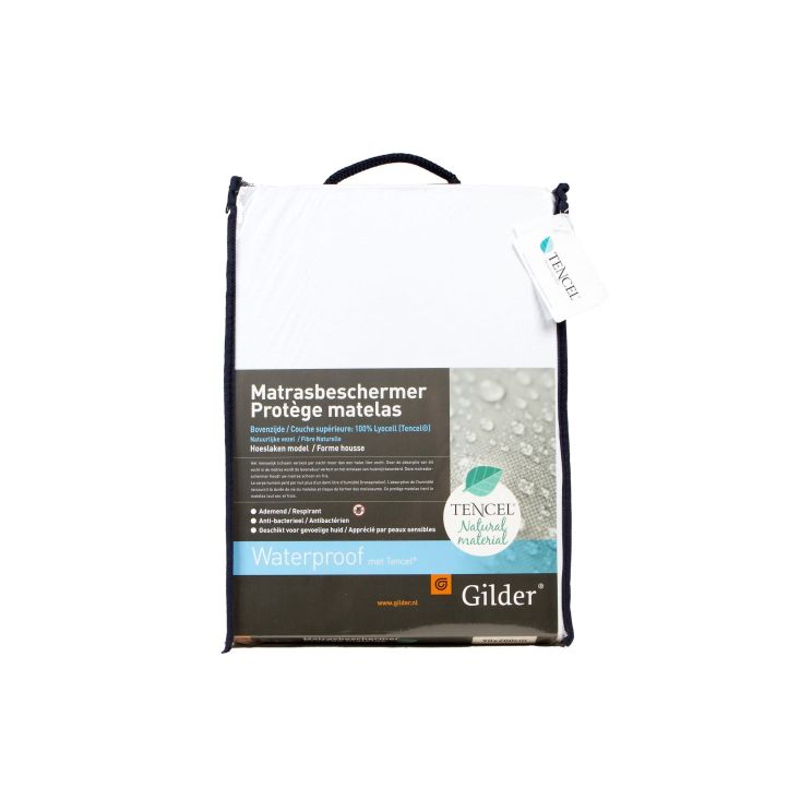 Het Tencel Bio SPLIT Topper hoeslaken van Gilder is een matrasbeschermer en hoeslaken in één. Een Tencel hoeslaken houdt je heerlijk warm in de winter en juist lekker koel in de zomer. Transpiratievocht wordt door de Tencel gelijkmatig opgenomen. Wanneer je het bed overdag open legt zal de vocht weer aan de lucht worden afgestaan. Met het Tencel hoeslaken blijft uw matras droog en vrij van bacteriën, schimmels en huisstofmijt.