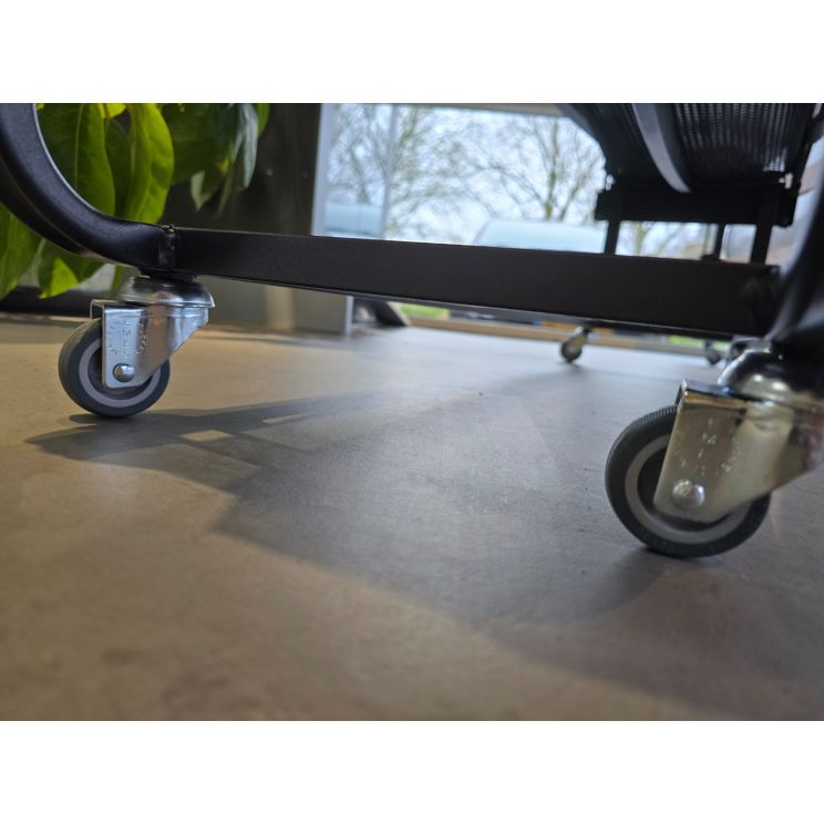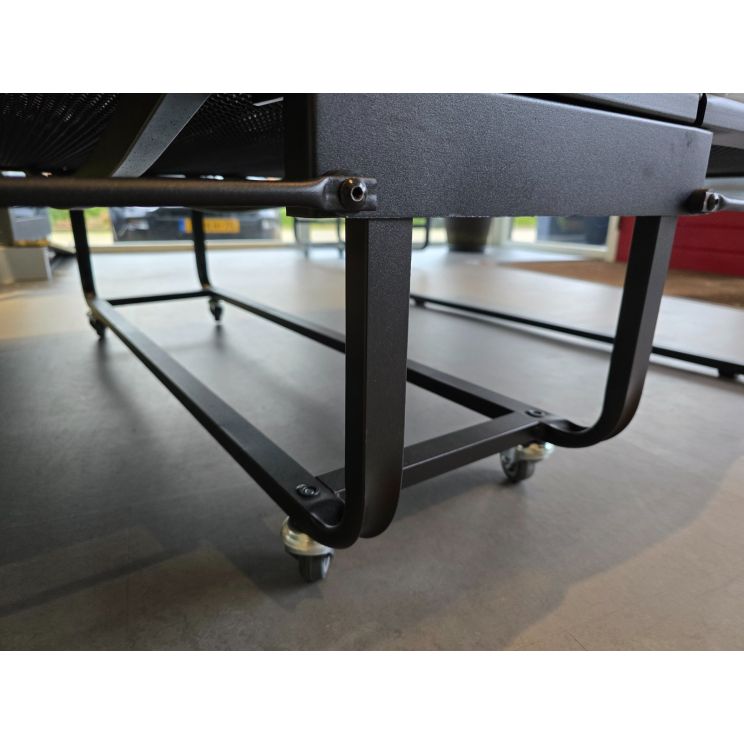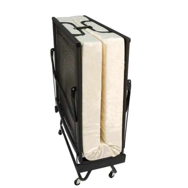 Het vouwbed is voorzien van wieltjes, die automatisch uitvouwen (bij openklappen) van de poten. Daarmee is het vouwbed goed verrijdbaar en dat is wel zo prettig. Door de sterke metalen frame is het vouwbed namelijk wel behoorlijk aan gewicht (ca. 30 kg).